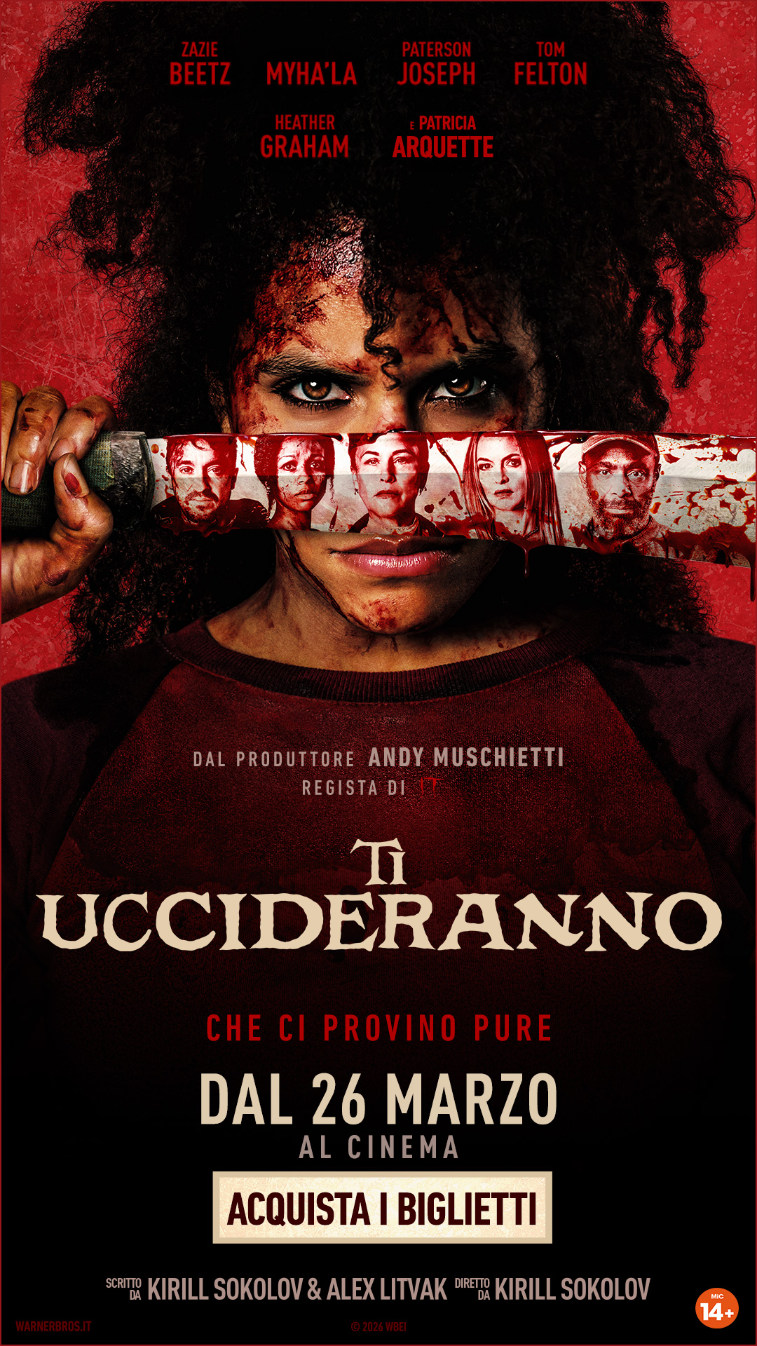 TI UCCIDERANNO porta sul grande schermo un horror-action-comedy ad alto tasso di adrenalina e intriso di sangue, in cui una giovane donna deve sopravvivere alla notte al Virgil – il covo misterioso e oscuro di un culto demoniaco – prima di essere sacrificata. Ne nasce uno scontro cinematografico audace e senza freni, tra uccisioni efferate e un umorismo nerissimo.nnNel cast del film troviamo Zazie Beetz, Myha’La, Paterson Joseph, Tom Felton, Heather Graham e Patricia Arquette.nnDiretto da Kirill Sokolov e scritto da Sokolov e Alex Litvak, il film è prodotto da Andy Muschietti, Barbara Muschietti e Dan Kagan. I produttori esecutivi sono Russell Ackerman, John Schoenfelder, Carl Hampe, Litvak e Sokolov.nnDietro la macchina da presa, Sokolov è affiancato dal direttore della fotografia Isaac Bauman, dallo scenografo Jeremy Reed, dal montatore Luke Doolan, dal costumista Neil McClean e dal supervisore degli effetti visivi Marc Smith. Le musiche sono di Carlos Rafael Rivera, la supervisione musicale è di Andrea von Foerster e il casting è a cura di Richard Delia.nnNew Line Cinema e Nocturna presentano, in associazione con Domain Entertainment, TI UCCIDERANNO, distribuito da Warner Bros. Pictures, solo al cinema dal 26 marzo 2026.
